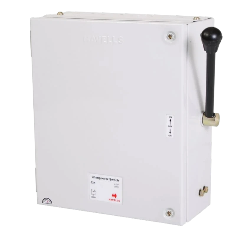 Havells offload changeover switches are used when the electrical load is turned off before switching. They are simple in design and cost-effective. These switches are suitable for systems where a short power break is acceptable.