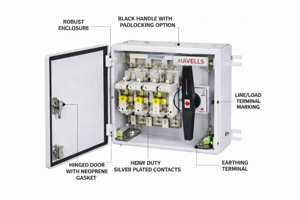 These features make Havells changeover switches suitable for industries that require stable and efficient power management. Their strong design and reliable performance help protect equipment and support continuous industrial operations.